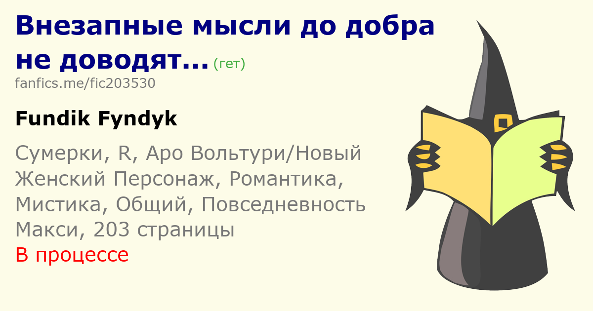| Fundik Fyndyk Мне Кажется боятся писать повседневные главы не нужно, так как они помогают читателям осмыслить основную сюжетную линию. У меня было такое, что я прекращала читать фф, потому что была слишком высокая концентрация значимых сюжетных поворотов на главу, но я возвращалась к чтению, когда появлялась эта «передышка» в виде повседневности | |